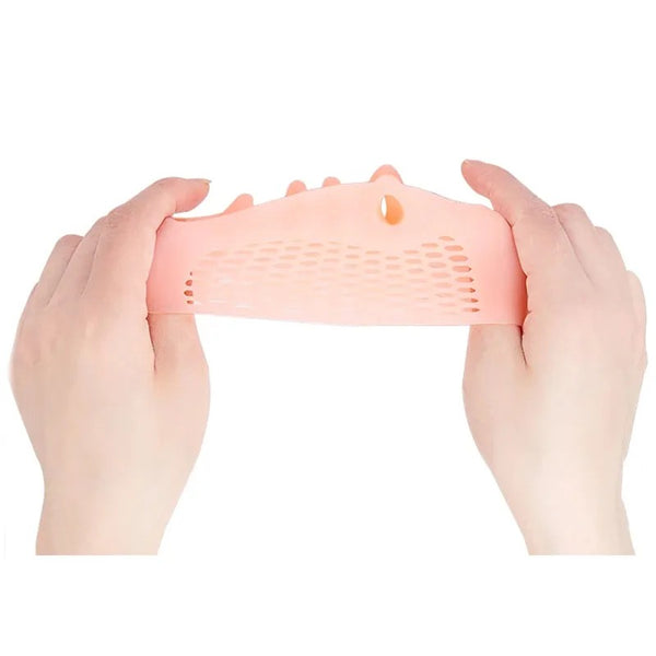 Sleevio schmiegt sich wie eine zweite Haut zwischen deine Zehen und schützt sie vor Druck, Reibung und Hühneraugen.