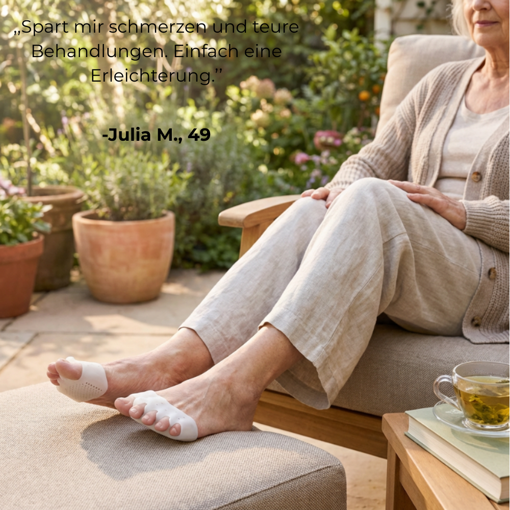 Auch wenn viele Nutzer:innen spürbare Verbesserungen erleben, garantieren Zehentrenner keine Wunder. Sie können Reibung, Druckstellen und Verwöhnung deutlich reduzieren — bei strukturellen Fußproblemen (z. B. starke Deformierungen, schwerer Hallux) ist aber ggf. eine ärztliche Beratung sinnvoll.